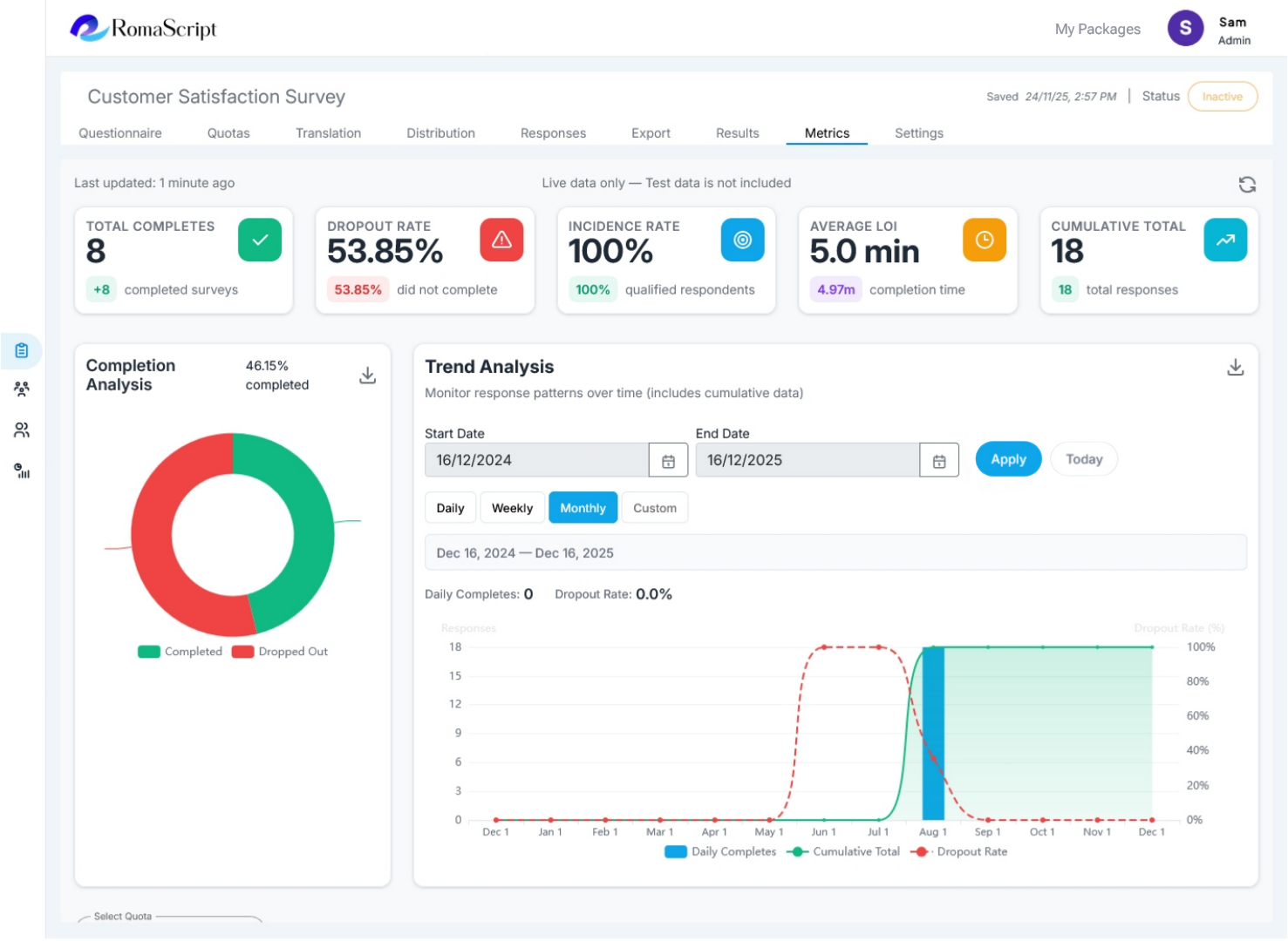 Empower your research with intuitive survey tools that deliver professional results. From questionnaire design to data collection, RomaScript simplifies complex research workflows for agencies, brands, and academic institutions worldwide.